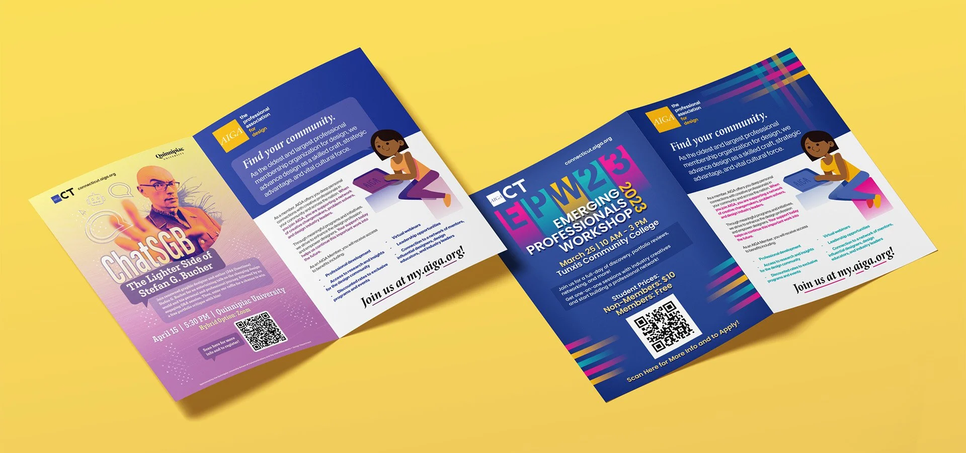During my last semester in university, I completed an internship in which I collaborated with the chapter president to refresh AIGA CT's social media and web presence, driving more attention to upcoming events and encouraging young designers to get involved with their community.