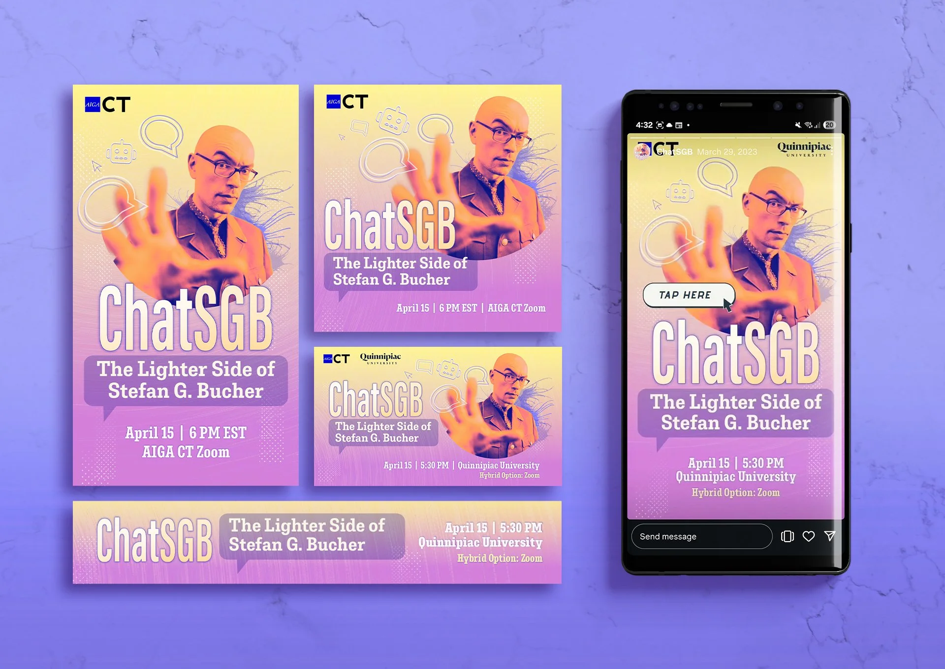 Social media and marketing materials created for the AIGA Connecticut chapter.