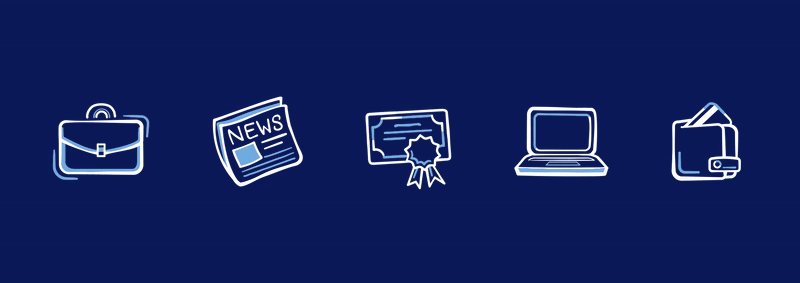 Thomaston Savings Bank's branding includes a primary dark blue and secondary light blue, so I alternated them throughout the icons. For instance, I used the secondary blue for scribbled shading, highlighting, and accents to enhance depth. Then, to ensure the icons still looked aesthetically pleasing on dark backgrounds, I created another layer with the primary blue set to white and made edits when needed. See examples in the divider below.