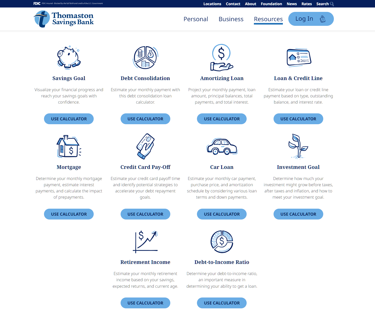 The 2023 Website Icon Suite is a custom family of icons created for Thomaston Savings Bank in line with its website’s redesign and brand overhaul.