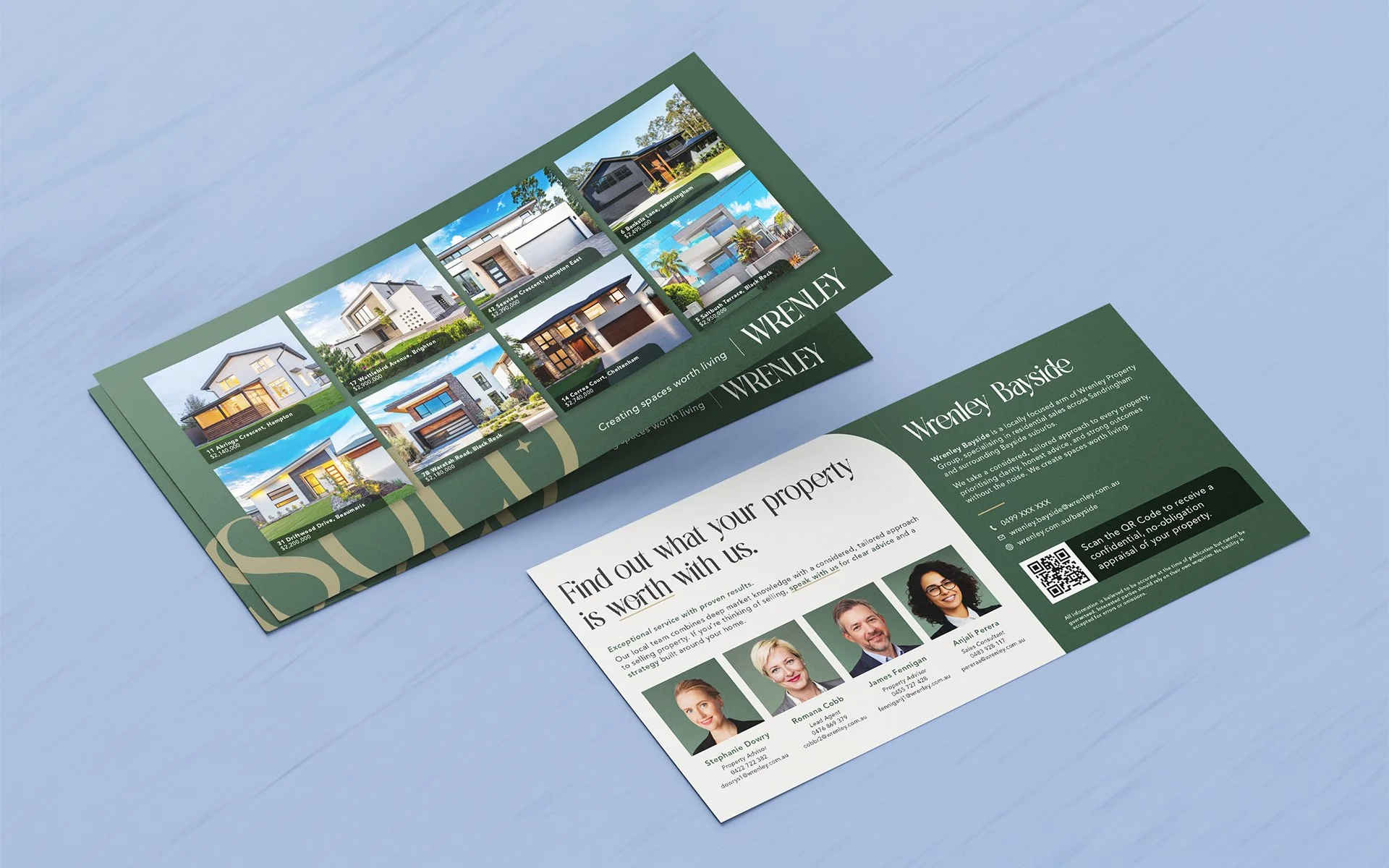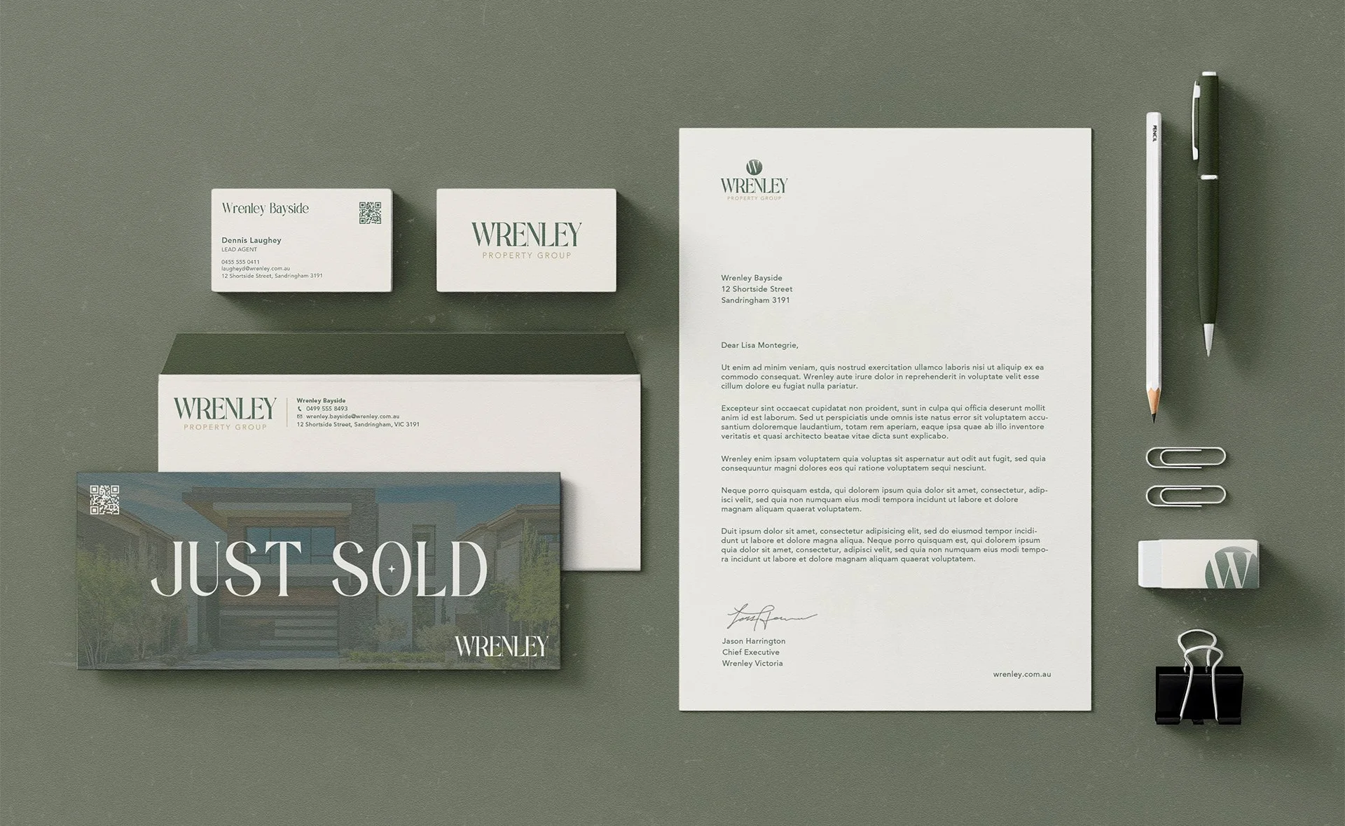 This project involved developing a complete brand system for Wrenley, including conceptualisation, visual identity, and a suite of print-led collateral. The result is a flexible identity designed to support the sale of high-end homes while emphasising Victorians’ quality of living.